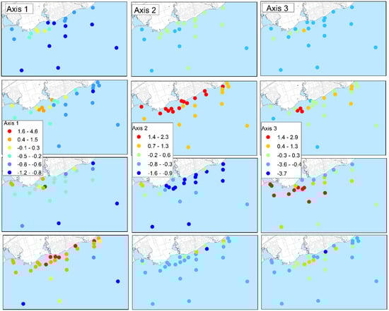 a is positively associated and nitrate + nitrite and silica are negatively associated with PCA axis 2, consistent with the summer drawdown of these nutrients by phytoplankton [
