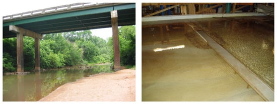 - Lee, S.O.; Sturm, T.W.; Gotvald, A.; Landers, M. Comparison of laboratory and field measurements of bridge pier scour. In Proceedings of the Second International Conference on SCOUR and EROSION-ICSE, Meritus Mandarin, Singapore, 14–17 November 2004; pp. 231–239. [Google Scholar]