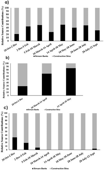 - Collins, A.L.; Walling, D.E.; Webb, L.; King, P. Apportioning catchment scale sediment sources using a modified composite fingerprinting technique incorporating property weightings and prior information. Geoderma 2010, 155, 249–261. [Google Scholar] [CrossRef]