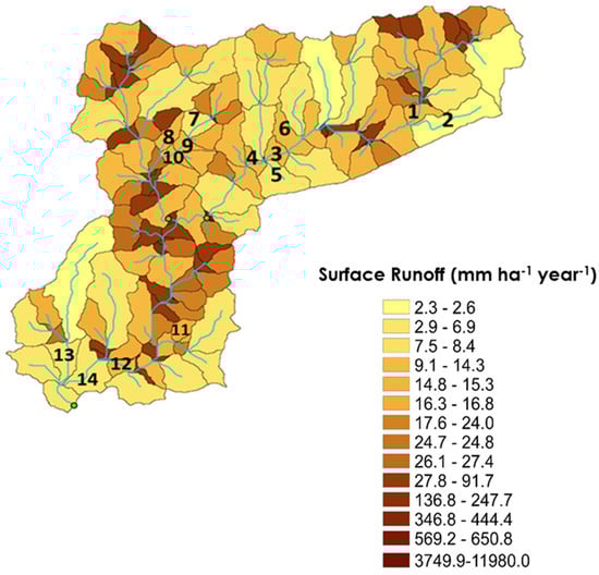 | Surface Runoff (m3/s) | 0.84 | 0.77 | 18.5 | 0.83 | 0.82 | −6.5 |