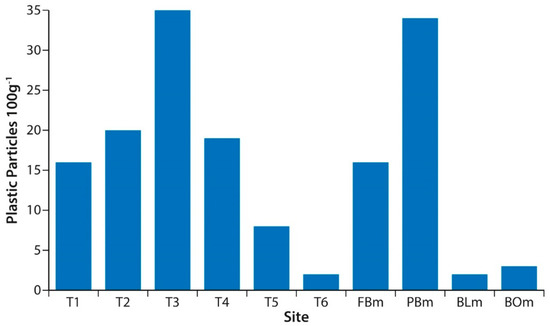 | Plastic particles 100 g−1 | 16 | 20 | 35 | 19 | 8 | 2 |