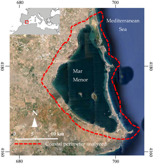 - García-Ayllón, S.; Miralles, J.L. The environmental impacts of land transformation in the coastal perimeter of the mar menor lagoon (SPAIN). Int. J. Des. Nat. Ecodyn. 2014, 9, 109–128. [Google Scholar] [CrossRef]