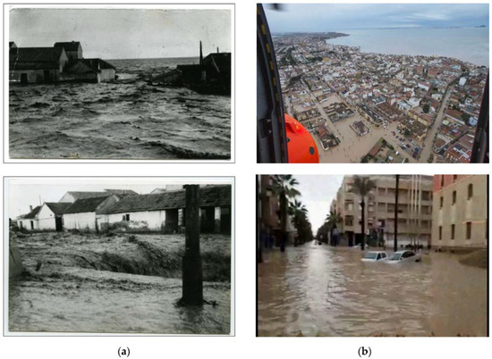 Floods occurred in the coastal town of Los Alcazares in (a) 1953 and (b) 2016 (source: Town Council of Los Alcazares).