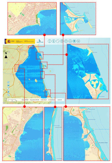- Martínez-Graña, A.; Gómez, D.; Santos-Francés, F.; Bardají, T.; Goy, J.L.; Zazo, C. Analysis of Flood Risk Due to Sea Level Rise in the Menor Sea (Murcia, Spain). Sustainability 2018, 10, 780. [Google Scholar] [CrossRef]