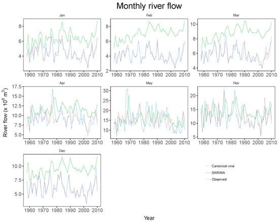 2.2.2. Monthly River Flow Simulation Using Canonical Vine Copulas