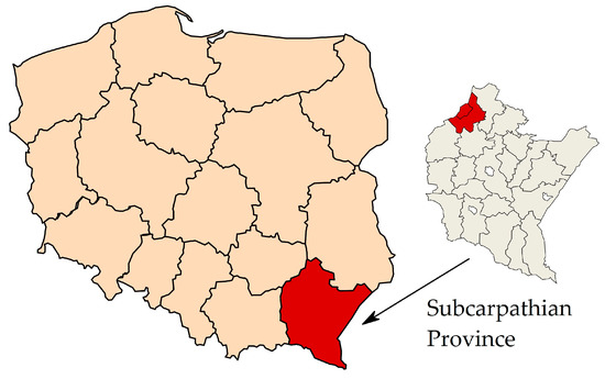 Location of the examined water supply system in Poland’s Subcarpathian Province.