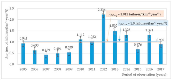 The failure rate for SCs over the distinguished 2005–2017 period.
