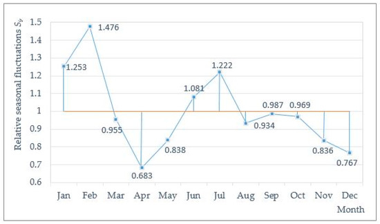 To assess variability due to the action of the factor of season, seasonal analysis was carried out after [69], by reference to: