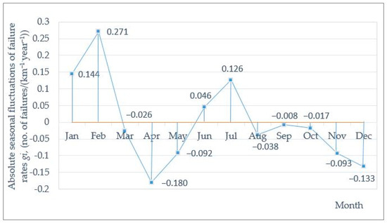 Absolute seasonal fluctuations of failure rates in WDN, in (no. of failures/(km−1∙year−1)).