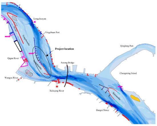 A location map of the channel training project in the estuary of the Yangtze River.