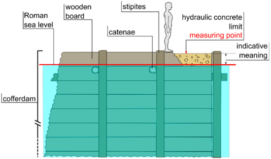 - the definition of a new type of measuring point for a more precise evaluation of the relative sea level variation—in the last 2000 years—in the case of port-like structures built with the cofferdam technique in hydraulic concrete.