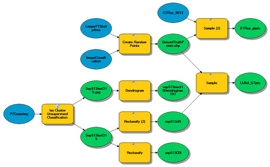 Automated geospatial model developed in ArcGIS ModelBuilder to conduct ET flux estimation validation with study area Landuse with ground-truth samples.