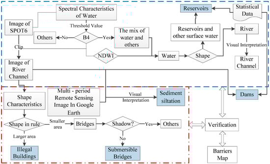 The technical flowchart for the identification of river channels and barriers.