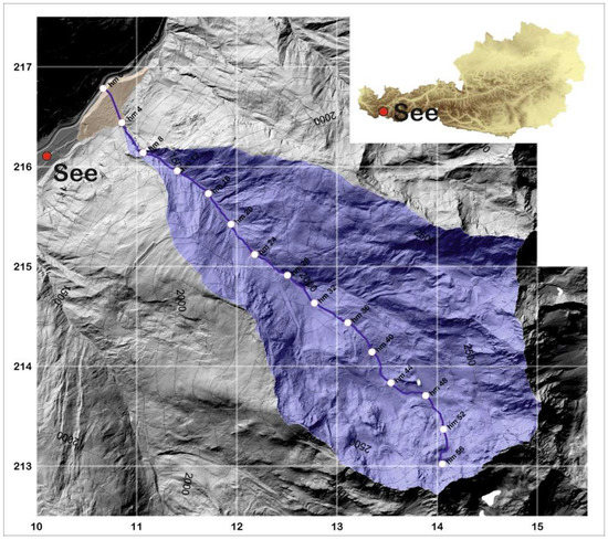 During the night of 7 to 8 June 2015, a disaster occurred in the Schallerbach catchment (Figure 8), namely, a torrent in the municipality of See, district Landeck, Tyrol [26].