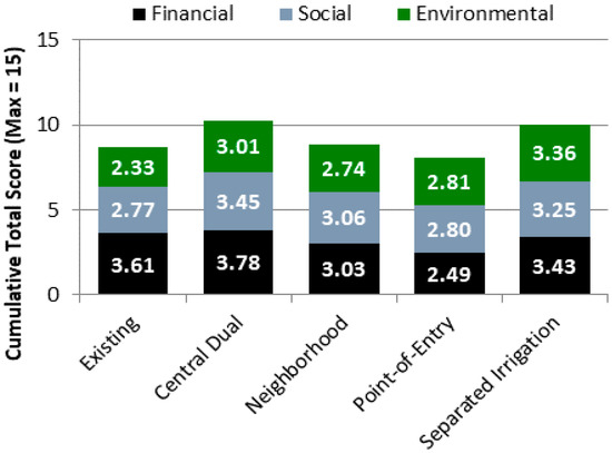 - Cole, J.; Sharvelle, S.; Fourness, D.; Grigg, N.; Roesner, L.; Haukaas, J. Evaluation of centralized and decentralized strategies for dual water supply: A case study. ASCE J. Water Resour. Plan. Manag. 2018, 144, 1. [Google Scholar] [CrossRef]