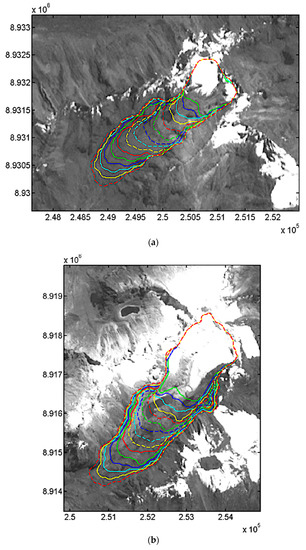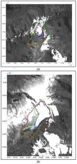 - Huh, K.; Mark, B.G.; Ahn, Y.; Hopkinson, C. Volume change of tropical Peruvian glaciers from multi-temporal digital elevation models and volume-surface area scaling. Geogr. Ann. A 2017, 99, 222–239. [Google Scholar] [CrossRef]
