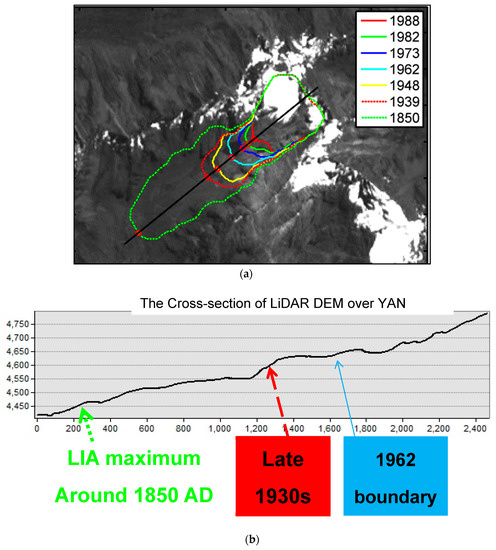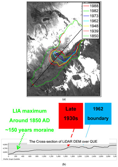 - Rabatel, A.; Jomelli, V.; Naveau, P.; Francou, B.; Grancher, D. Dating of Little Ice Age glacier fluctuations in the tropical AndesL Charquini glaciers, Bolivia, 16°S. C. R. Geosci. 2005, 337, 1311–1322. [Google Scholar] [CrossRef]