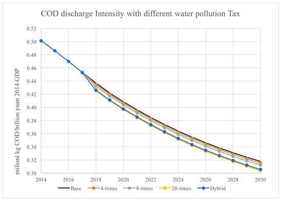 Time path of COD discharge Intensity at different tax levels.