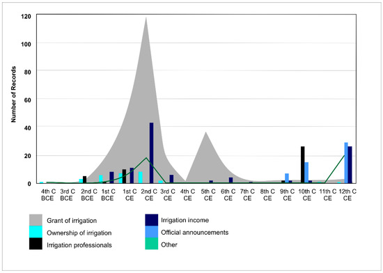 Temporal distribution of analyzed records in different categories of ancient water governance structures.