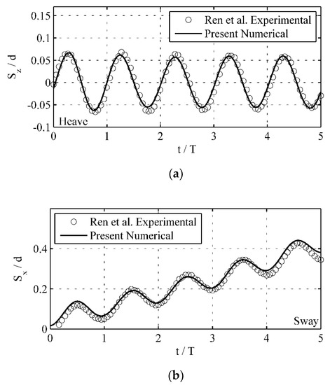 In this section, two cases are simulated to validate the present numerical model in applications of water waves interaction with floating structures. The verified model is then applied to analyze the motions of a catenary moored floating structure in waves.