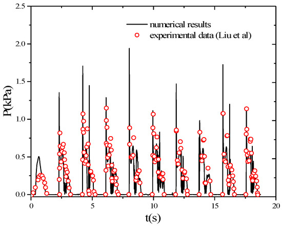 Figure 10. The validation of the pressure history curve, experimental data (et al.) from [27].