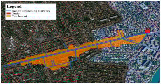 The URBS model, developed by the French Institute of Science and Technology for Transport, Development and Networks (IFSTTAR) in Nantes, France [] was selected for the hydrologic modeling component of this study. This model provides a spatially distributed representation of the catchment and a physically-based description of the hydrological dynamics in surface and subsurface areas. Choosing a process-based distributed hydrological model was considered essential for investigating contaminant transport because the model provides a detailed description of spatial variations in land use characteristics on the elemental scale of a cadastral parcel.