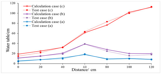 It can be seen from Figure 4 and Figure 5 that, at most locations, the calculated results were fairly consistent with that of laboratory tests. The maximums of the relative error for flow profile and average pressure were 7.1% and 6.5%, respectively, indicating that the numerical simulations produced reliable and acceptable results.