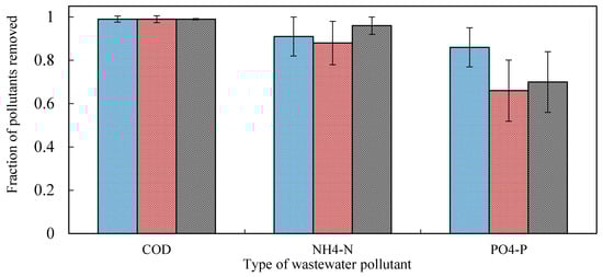 Pollutant concentrations in the real or artificial wastewater used as influent varied from intermediate (approximately 330 mg COD L−1; 20 mg Tot-N L−1 and 4 mg Tot-P L−1) to high (approximately 1230 mg COD L−1; 78–95 mg Tot-N L−1 and 4 mg Tot-P L−1) (Table 4). The differences in the quality of the influent reflected differences in organic matter concentration between greywater (wastewater from kitchen, shower and laundry activities) and mixed household wastewater (wastewater from toilet, kitchen, shower and laundry) [10]. They could also reflect differences in wastewater produced in water-rich regions (e.g., Sweden) and water-scarce regions (e.g., Jordan) [28,29]. However, wastewater characteristics vary with factors such as water usage, household activities and the number of person equivalents connected to the system [17]. Rural areas with OWTS tend to yield more concentrated wastewater than municipal areas with large-scale wastewater treatment plants, particularly in water-scarce regions [28].