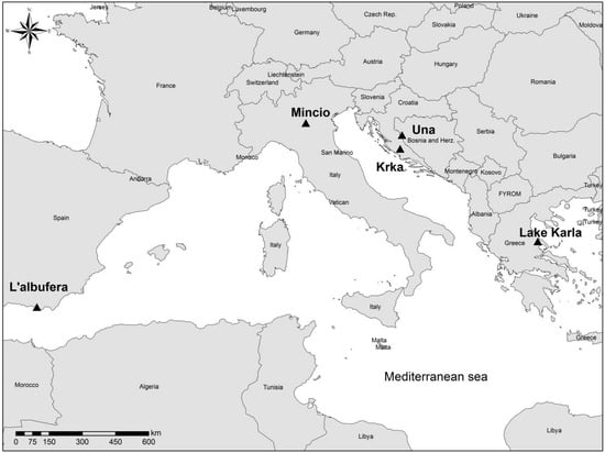 Five freshwater ecosystems (Figure 1) that are enlisted under the network of Natura 2000 and located in European NPs of the Mediterranean region are set as study sites: