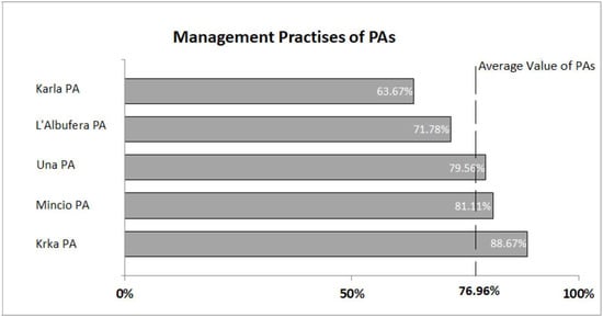 - Management Practices: the set of queries selected in this field is such that can produce a clear image regarding PA management structure and actions regarding to its effectiveness, the PA accessibility and relations with visitors along with other goods and comforts provided (Table A1).