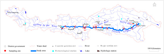 The Yarlung Zangbo River (hereafter referred to as the YLZB River) is the longest plateau river in China and one of the highest rivers in the world. The total length in China is 2057 km, the drainage area is 240,000 km2, and the average elevation is above 4000 m. The middle stream starts from Lazi and ends in Pai of Milin County. The main cities, Lhasa, Shigatse, Shannan, and Nyingchi, are located in the middle reaches, which is the most developed area of Tibet.
