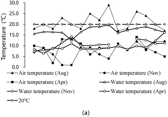 Temperature (a) and pH (b) in the overlying water of each sample site.