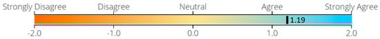 Shows the average score of answers from participants when asked if they have acquired new knowledge from playing the game—range [−1,2] and standard deviation 0.74.