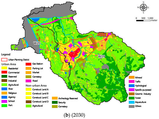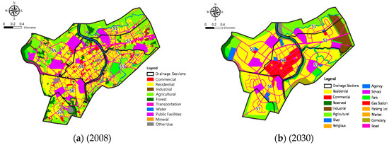 Figure 3. Present and future land-use maps on watershed scale: (a) present; (b) future.