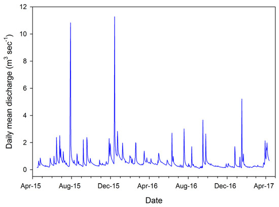 Study duration daily mean discharge (m3 s−1) measured at watershed outlet, Walnut Creek, Iowa. Data from USDA-ARS.