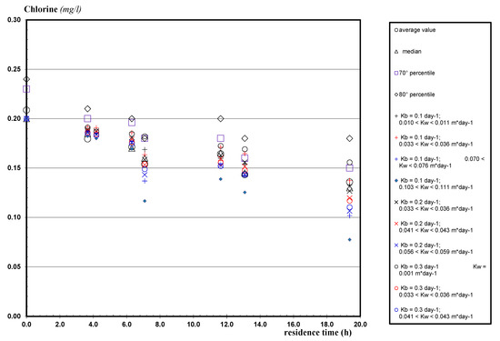- Powell, J.C.; Hallam, N.B.; West, G.R.; Forster, C.F.; Simms, J. Factors which control bulk chlorine decay rates. Water Res. 2000, 34, 117–126. [Google Scholar] [CrossRef]