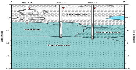 Hydrogeological cross-section of the study area.