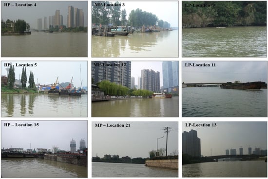 Sampling locations representing high (HP), medium (MP), and low (LP) pollution risk locations.