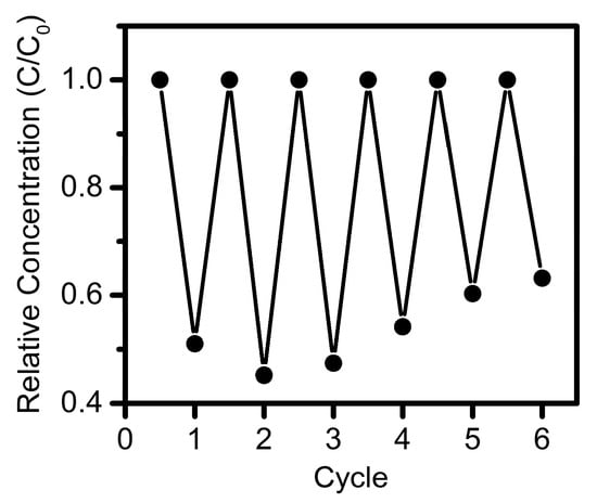 Recyclability of a single batch of FPC particles to degrade AEO in raw OSPW, where C and C0 are the concentration and initial concentration of AEO, respectively.