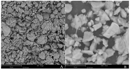(A) SEM micrograph of nano I-Sm (before adsorption); (B) after Pb(II) adsorption.