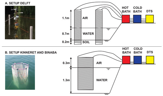DTS measurement setup used in (A) Delft, and (B) Kinneret and Binaba.