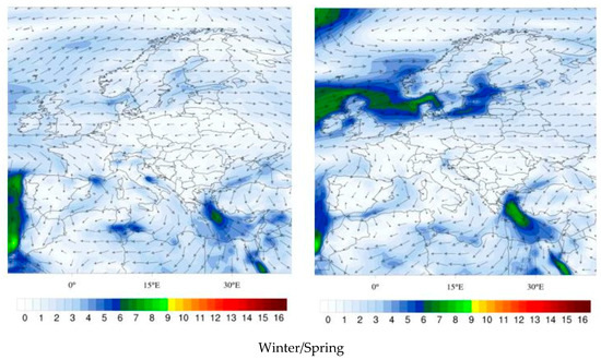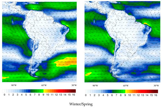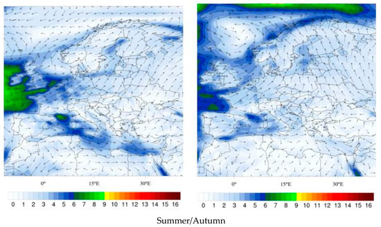 The wind farms were allocated in the best wind conditions for generating electricity. The wind maps are shown in Figure 5, Figure 6 and Figure 7.
