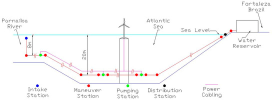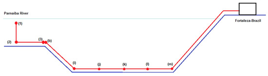 The schematic diagram of the underwater adduction line to the metropolis of Fortaleza, Brazil is shown in Figure 8.