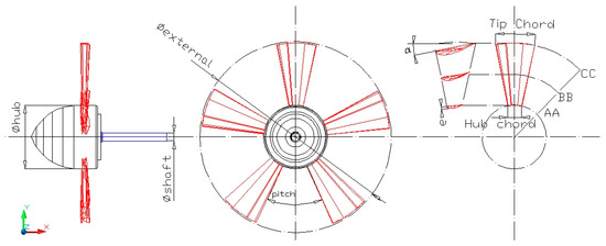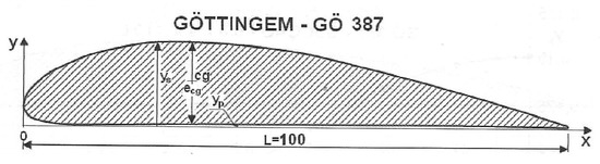 The axial hydraulic pumps were designed for the lift wing theory [54] and included the establishment of the physical limits of flow culminating in the preliminary hydrodynamic calculation and with the geometry of the rotors and the dimensioning of electrical drive motors. The hydrodynamic profile selected was the hydrofoil Gottingem GO 387 [55], as shown in Figure 9 and Table 3.