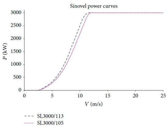 Power curve of the offshore wind turbine Sinovel SL3000-113 *. Source: [59]. * Citation of commercial trademarks and models does not mean recommendation by the authors.