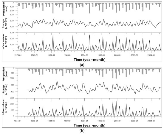 Quarterly operational records of dams: (a) Soyanggang dam; (b) Andong dam.