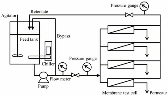 Schematic of flat sheet reverse osmosis crossflow filtration system.