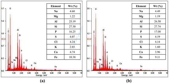 EDX chemical precipitations on the fouled RO membrane: (a) FEn; (b) FLR.