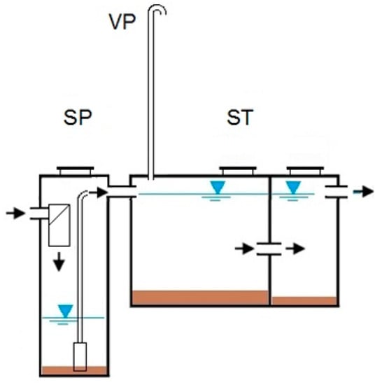 - Nasr, F.A.; Mikhaeil, B. Treatment of domestic wastewater using modified septic tank. Desalination Water Treat. 2014, 56, 2073–2081. [Google Scholar] [CrossRef]