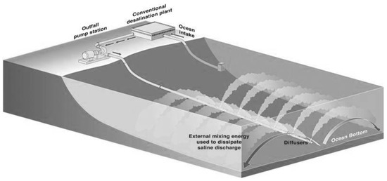 - Bashitialshaaer, R. An experimental study to improve the design of brine discharge from desalination plants. Am. J. Environ. Prot. 2013, 2, 176–182. [Google Scholar] [CrossRef][Green Version]